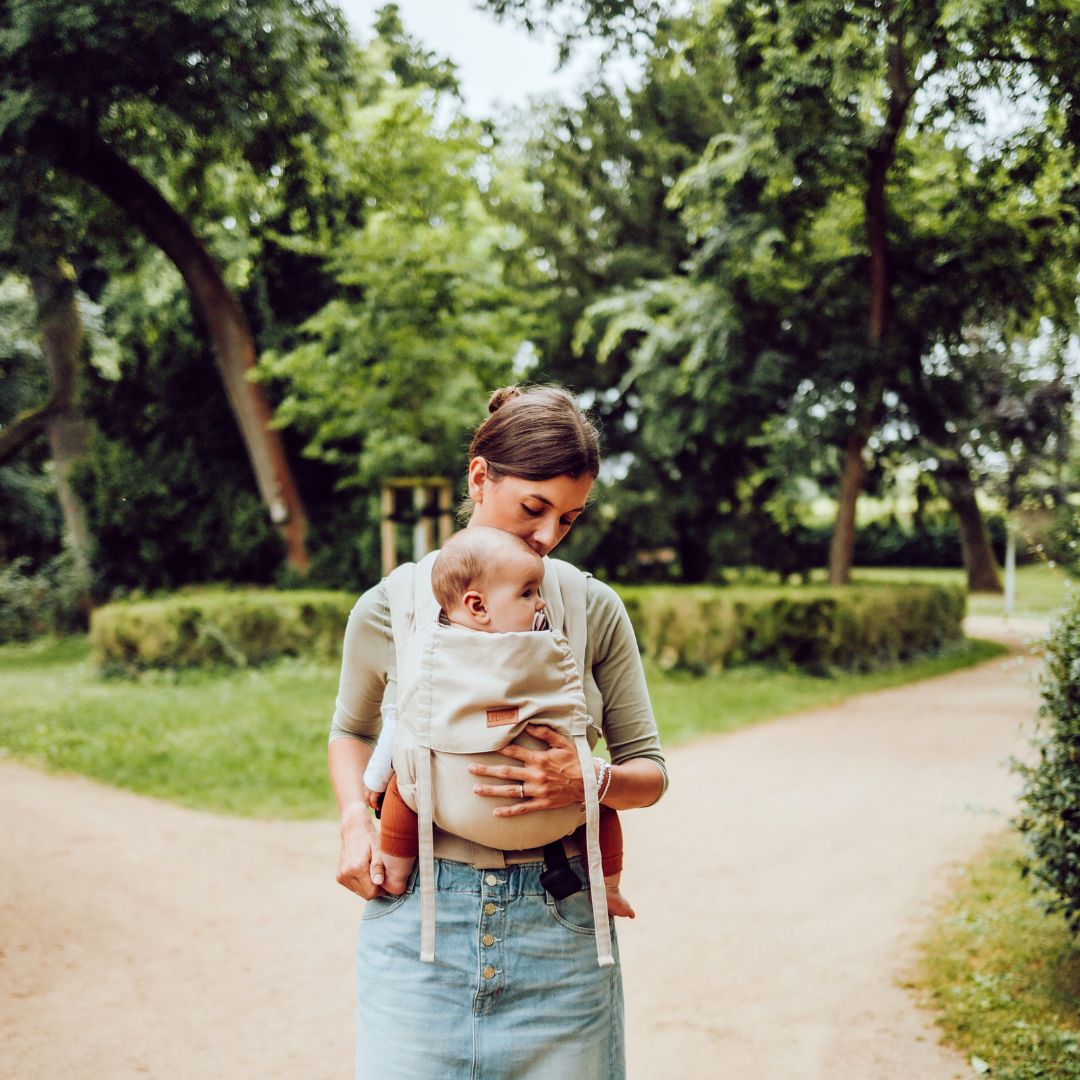 LELIBA Zack Gobi – natürliche Babytrage in SandoptikDie LELIBA Zack Gobi ist eine ergonomische Babytrage für Familien, die im Alltag schnell, flexibel und körpernah tragen möchten. Sie wurde gemeinsam mit Trageberater:innen entwickelt und verbindet einfache Handhabung mit durchdachter Ergonomie und einem besonders natürlichen Design.Für den Alltag gemacht – schnell angelegt und bequem getragenDie Zack ist unsere Babytrage für zügiges Anlegen ohne Umwege. Durch die verstellbaren Polster in den Trägernkannst du sie individuell auf deinen Körper abstimmen. Das sorgt für ein angenehmes Tragegefühl und ermöglicht dir, dein Baby entspannt und sicher nah bei dir zu tragen.Alle Schnallen sind bewusst nach vorne verlegt, damit du sie gut erreichst und intuitiv schließen kannst. Die Träger verlaufen überkreuzt über den Rücken und lassen sich bei Bedarf auffächern. Eine Verbindungsschnalle sowie ein Brustgurt sorgen für zusätzliche Stabilität.Ergonomisch angepasst an dein BabyDie LELIBA Zack Gobi eignet sich für Babys von 3,5 bis 18 kg und unterstützt die empfohlene Anhock Spreiz Haltung. Dank des stufenlos einstellbaren Stegs und der veränderbaren Rückenhöhe wächst die Tragehilfe mit deinem Kind mit und passt sich jeder Entwicklungsphase an.Im oberen Bereich des Rückenteils befindet sich eine Kordelverstellung, mit der du den Stoff gezielt an den Oberkörper deines Babys anpassen kannst. So bleibt der obere Rücken gut gestützt. Der diagonal elastisch gewebte Stoff aus 100 % KBA Baumwolle sorgt für Halt, ohne einzuengen, und unterstützt die natürliche Haltung der Wirbelsäule.Seitliche Beinpolster erhöhen den Komfort für dein Baby zusätzlich.Spürbare Entlastung für deinen KörperEin Großteil des Gewichts wird vom ergonomisch geformten Bauchgurt aufgenommen. Dadurch werden Schultern und Rücken entlastet und auch längeres Tragen bleibt angenehm. Über den Bauchgurt kannst du das Rückenteil optimal positionieren und fein einstellen.Für größere Babys befinden sich im Rückenteil zusätzliche Schnallen, mit denen die Träger angepasst werden können. So bleibt die Babytrage auch bei zunehmendem Gewicht stabil und bequem.Vielseitig tragbar und natürlich im DesignDie LELIBA Zack Gobi kann vor dem Bauch, auf der Hüfte oder auf dem Rücken getragen werden und passt sich flexibel eurem Alltag an. Das Design Gobi ist inspiriert vom feinen Sand der Wüste. Die helle Naturfarbe wirkt ruhig, zeitlos und weich. Für dieses Design wurde besonders viel Traumsand eingewebt, was dem Stoff seine sanfte, natürliche Ausstrahlung verleiht.Da wir ausschließlich mit Naturmaterialien arbeiten, empfehlen wir, den Stoff nicht dauerhaft direkter Sonne auszusetzen, da es zu leichten Farbveränderungen kommen kann.Technische Details im Überblick• individuell einstellbarer Steg• verstellbare Rückenhöhe• 4 herausnehmbare Polster• abnehmbare Kopfstütze• ergonomisch geformter Bauchgurt• Brustgurt inklusive• Verbindungsschnalle enthalten• unterstützt die Anhock Spreiz Haltung• gefertigt aus 100 % KBA Baumwolle• entwickelt von Trageberater:innen• geeignet von 3,5 bis 18 kg• Farbe Natur Sand GobiPersönliche Beratung bei LELIBADu hast Fragen zur LELIBA Zack Gobi oder wünschst dir Unterstützung beim Anlegen deiner Babytrage? Melde dich gerne zu unserer kostenlosen Trageberatung an. Wir begleiten dich persönlich, ehrlich und auf Augenhöhe.Herstellerinformationen: LELIBA GbR Berliner Str. 9a 65468 Trebur Deutschland info@leliba.baby https://www.leliba.baby Die LELIBA Zack Gobi Babytrage ist eine nachhaltige Tragehilfe aus Bio Baumwolle und eignet sich für Eltern, die ihr Baby ergonomisch und körpernah tragen möchten. Sie kann ab Geburt genutzt werden, unterstützt die Anhock Spreiz Haltung und ist flexibel als Bauchtrage, Hüfttrage oder Rückentrage einsetzbar. Der ergonomische Bauchgurt und der anpassungsfähige Stoff sorgen für hohen Tragekomfort im Alltag.